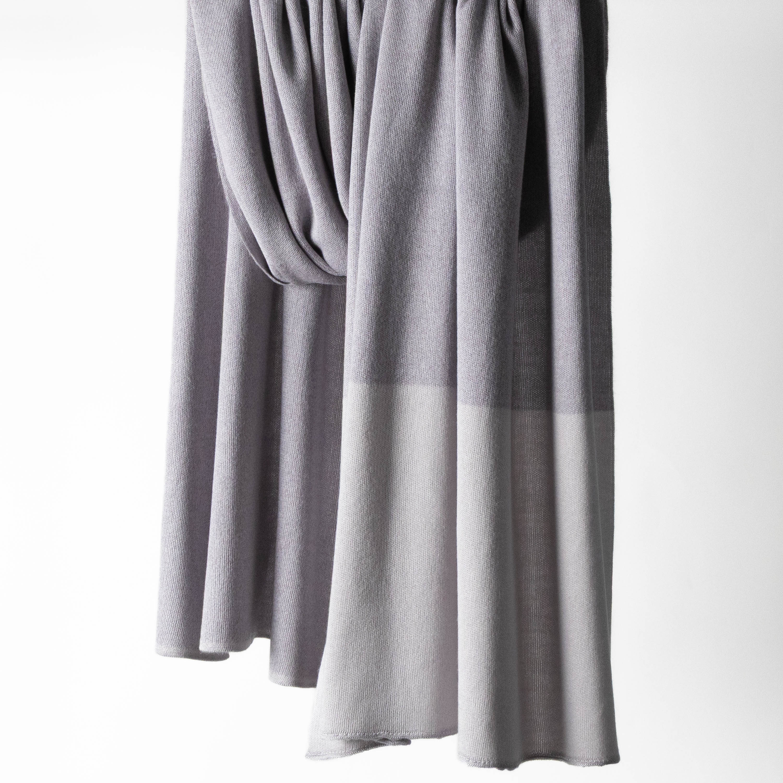 グレーベースには、パープルやブルーの糸を織り交ぜて、落ち着いた中にも華やかさをプラス。